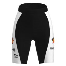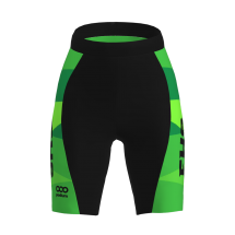 These completely revamped women's bike shorts feature a compressive fabric for your custom design on lower back and outer thighs and a black nylon fabric on the inner thighs, chamois area and waist band for extra durability where you need it most. Traditional silicone gripper at the leg openings keeps the shorts in place. The perfect selection for teams who want durable, compressive bike shorts to outlast a long season of racing and training.