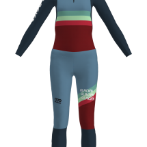 Developed with our elite athletes in mind, we've redesigned our Gold Nordic Suit to have the same great fit you'd expect, with just a few fewer panels and an even higher quality fabric. At 28 pieces, our Two-Piece Women's Gold Nordic Suit features highly breathable fabric with amazing wicking capabilities and excellent color saturation so that your suit's colors will stay vivid. This suit is highly adaptable - performing well on extremely hot days when an under layer may not be necessary and on extremely cold days when a warmer under-layer is needed. We've upgraded the waistband of the women's-specific suit to be contoured with a thicker internal elastic panel for improved comfort and fit.